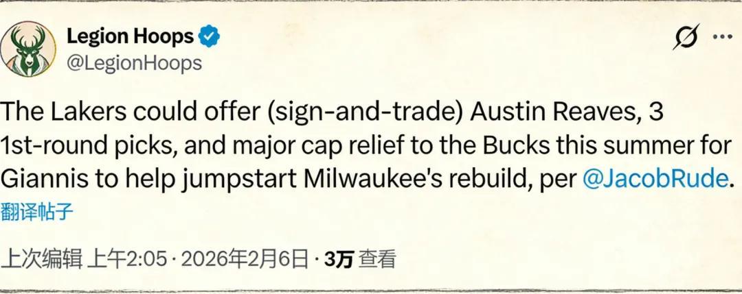但与此同时,也有一些球队,因为雄鹿将相关交易谈判拖到今年夏天而意外受益,比如洛杉矶湖人。