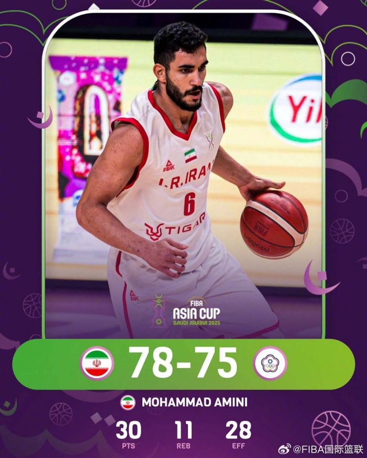 阿米尼19投8中狂揽30分11篮板 力助伊朗逆转中国台北荣膺MVP